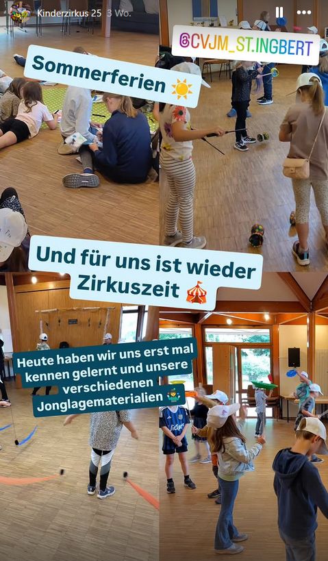 Die Woche war geprägt von einem gelungenen Miteinander, das allen Beteiligten lange in Erinnerung bleiben wird. Schon in den ersten Tagen erlebten die Kinder spannende Momente und sammelten viele neue Eindrücke. Dabei entstanden nicht nur neue Freundschaften – die Kinder entdeckten auch ihre eigenen Talente und probierten sich in ganz unterschiedlichen Bereichen aus: Jonglieren, Flower-sticks, Einrad fahren, Teller drehen, Bodenturnen, oder Diabolo spielen, umrahmt von einem Eingangssong und Tanz– für jeden war etwas Passendes dabei.